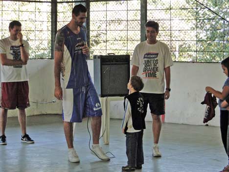 Já faz três dias (foi em 19/7), mas vale demais o registro. A visita dos jogadores e da comissão técnica do Bauru Basket ao “Projeto Férias” do BTC. Sinal de que o diálogo com a comunidade é amplo, vai desde as comunidades carentes até um clube social tradicional da cidade. A criançada se divertiu com os grandalhões e, de quebra, Larry Taylor ganhou um enorme calor humano exatamente em seu primeiro dia de treinos com o Itabom/Bauru depois do corte da Seleção Brasileira.