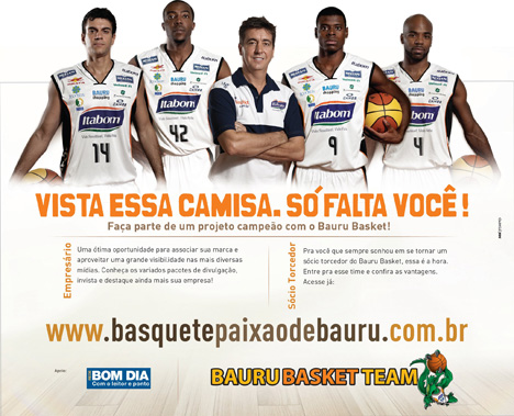 A Itabom encabeça a campanha, sobretudo aquela voltada para os investidores. Isso dá a impressão de que o frigorífico de Itapuí seguirá no projeto. Tomara. E foi reforçada a possibilidade de um segundo patrocinador master dar nome ao time (Itabom/???/Bauru), o que seria primordial para segurar o craque Larry Taylor por aqui – pois será muito assediado ao final do NBB4 – e também para trazer bons reforços, até porque agora é possível contratar mais um norte-americano (Polk?).