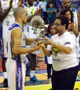 Entregando o dolorido (porém honroso) troféu de vice-campeão. Foto: Henrique Costa/Bauru Basket