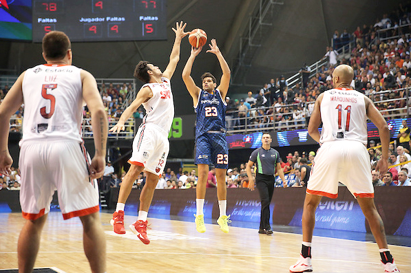 Mas a bruxa sobrevoa o Domo Bolivariano: Alex comete a quinta falta e Ricardo Fischer se machuca e deixa a quadra chorando, carregado pelo Capitão América. Sem o armador titular, sem o reserva (Paulinho) e sem o quebra-galho na posição (Alex). Hora de superação: Gui Santos em quadra, dois lances livres ok de Meindl e um pontinho atrás. E o camisa 23 vira herói com uma bolaça de fora, virando a partida. Enquanto os cariocas erraram muitos LLs, Day fechou o jogo na linha livre. Que vitória, que superação!!! Dragão na final depois de uma belíssima parcial de 28 a 15, vencendo de forma heroica por 83 a 81.