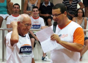 Seo Zé é entrevistado pelo locutor do evento: paixão pelo basquete