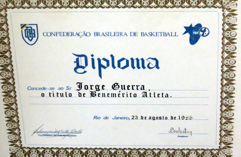 Título de Benemérito Atleta, raro diploma concedido pela CBB