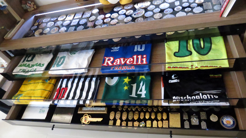 O organizado espaço acolhe medalhas, camisas, souvenirs e muita história!