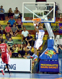 Larry voltou a enterrar em uma partida depois de muitos anos. Com a plasticidade de sempre. Foto: Henrique Costa/Bauru Basket