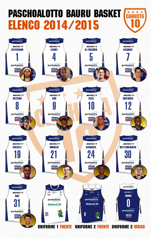 A exemplo do que fez o ano passado, o Canhota 10 antecipa para a torcida a numeração do elenco do Dragão para a temporada. Pergunta daqui e dali e pronto, aí estão as fardas dos guerreiros. A curiosidade fica por conta do número da camisa de Jefferson William. O ala-pivô costuma vestir a 10, que já é de Alex Garcia. Assim, escolheu a camisa 1, aproveitando-se da novidade de que a Fiba liberou o uso dos números 1, 2 e 3. No mais, os atletas que já estavam no elenco seguem com os mesmos números (exceção a Gabriel Oliveira, que herda a 7 que Rafael Souza usou no NBB6). Entre os demais reforços, Carioca escolheu a 24, Hettsheimeir a mesma 30 que vestia no Málaga e Robert Day segue com a 31. Abaixo, arte minha sobre imagens da Cambs (fornecedora de material esportivo) e de divulgação do Bauru Basket. A Cambs, aliás, já está vendendo a camisa em seu site ou pelo telefone (34) 3223.0171. Gostou? Compartilhe à vontade!