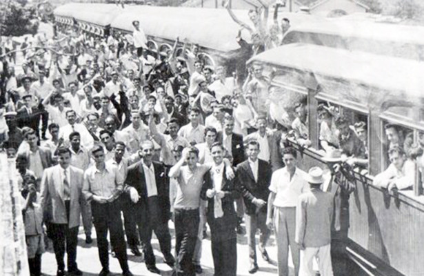 (Na foto acima, dos anos 1950: torcedores fretavam trens para acompanhar o Noroeste)