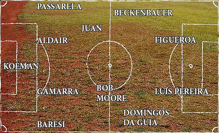 Até pensei em colocar apenas zagueiros da atualidade (Índio e Chicão no ataque, por exemplo…), mas resolvi homenagear os melhores da história – portanto, o gramado judiado da imagem é brincadeirinha com a fama de brucutu dos defensores! Confira o timaço sensacional de zagueiros que imaginei: