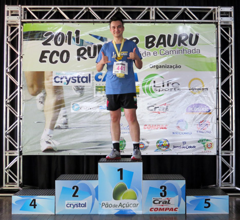 No último domingo (11/12), tive uma importante conquista. Completei uma prova de 5km (quarta etapa da Eco Runner, em Bauru). Foi o resultado de dois meses de academia depois de looongo – bota longo nisso – período de sedentarismo. Nesse tempo (com algumas faltas por causa da correria, confesso), meu objetivo era o condicionamento físico. Fôlego, saúde, nada de vaidade, busca de corpo marombado. Por isso mesmo escolhi uma clínica de fisioterapia, não uma academia convencional. Em meu horário, apenas eu, então meu professor Plínio se tornou um personal e me preparou para correr, com treinamento bastante específico.