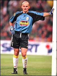 Com a camisa do Galatasaray: campeão da Copa da Uefa pegando pênaltis na final