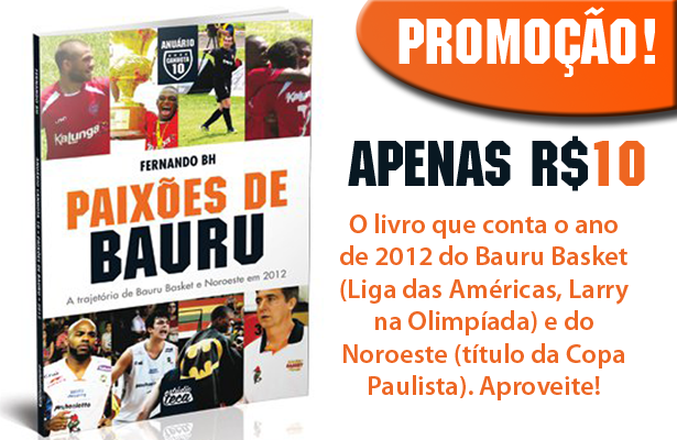 Você pode adquirir meu livro PAIXÕES DE BAURU, que conta a trajetória do Bauru Basket e do Noroeste em 2012, por apenas R$ 10.
