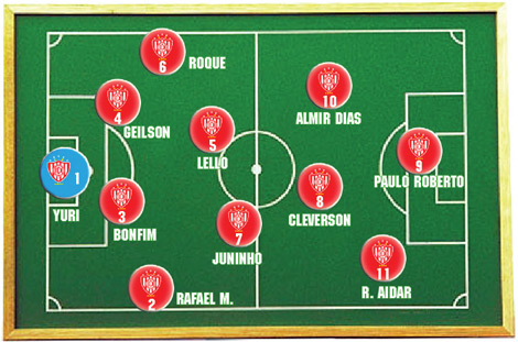 Contra o Estoril: Juninho, Cleverson e Aidar formando lado direito forte