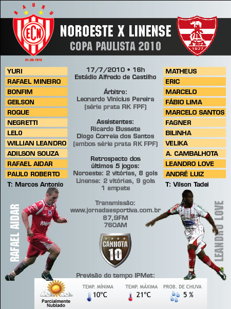 Noroeste Linense Copa Paulista 2010 ficha técnica futebol