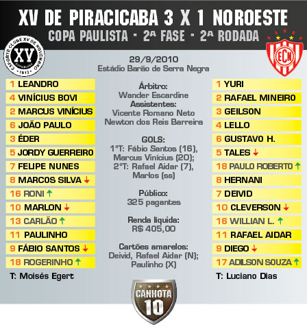 Seria uma derrota aceitável, normal, não fosse a necessidade de pontuar após perder em casa na estreia da segunda fase da Copa Paulista. O XV de Piracicaba venceu o Noroeste por 3 a 1, chegou a quatro pontos no grupo 7 e deixou o Alvirrubro na lanterna, com zero. O líder é o Sport Barueri, com seis – Francana tem um.