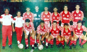 Time do Paulista de 1992. Em pé: Luizão, Alcides, Cláudio, Sílvio Roberto, Luís Claudio, Evandro, Amarildo e Monteiro. Agachados: Jorge Raulli, Vaguinho, Marco Aurélio, Baroninho e Robert.