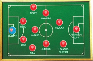 No segundo tempo, Knevitz voltou ao seu esquema tradicional, com um cabeça-de-área e dois apoiadores (que muitos consideram ser três volantes); Velicka fecha o quarteto da armação e Leandro Oliveira se aproxima do centroavante.