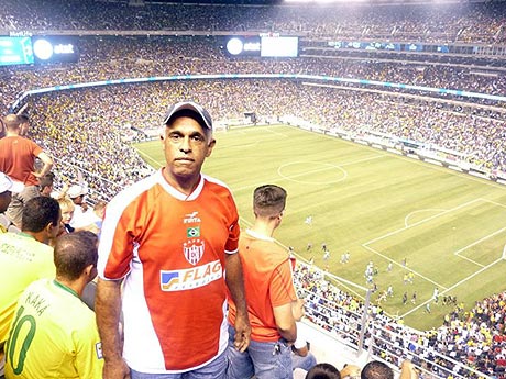 Começou o jogo e todos nós atentos e emocionados. A torcida fazendo aquela onda que girava todo o estádio, nos seus três anéis de arquibancadas. Mesmo o americano, que não está acostumado com esse tipo de comportamento, acabou se envolvendo com o clima brasileiro. E lá no gramado o Brasil jogando um futebol bonito e deixando toda a torcida num delírio sem igual.
