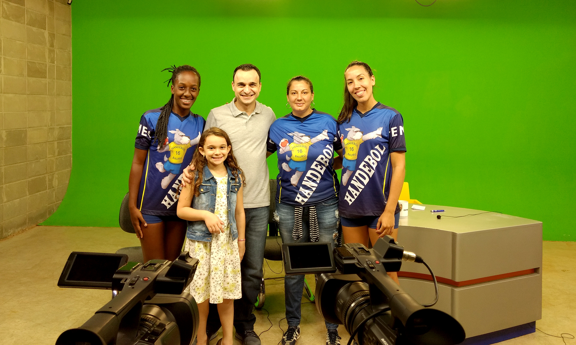 Esta sétima edição do ENTREVISTA 10 foi muito especial. Nela, fechamos o ciclo de já ter trazido ao programa todas as modalidades coletivas do esporte de Bauru que disputam  competições de elite. E como Bauru é privilegiada neste sentido: Futebol, basquete, vôlei, polo aquático, futsal e handebol! O destaque da vez foi a AABB/Semel/FIB/Bauru Handebol, representada pela treinadora Maria Amelia Theodoro e das jogadoras Bruna e Dayana — convidei para dar um alô às câmeras suas colegas que estavam nos bastidores. Esta menininha bonita ao meu lado no encerramento é minha filha Ana. Foi ver o pai trabalhar e encerrou a atração com seu gracioso tchau.