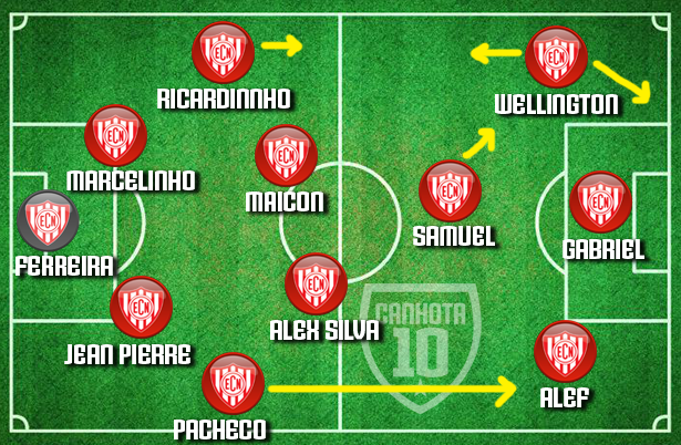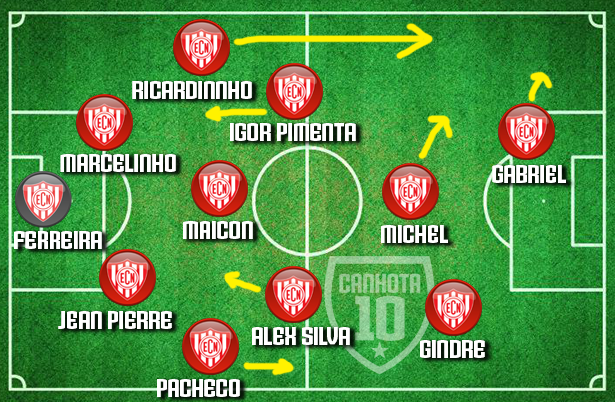 Gabriel, inclusive, pode ser uma opção de lado quando um desses centroavantes puder jogar, já quem Gindre não vem bem. Alef, apesar de elogiado por muitos no último domingo, creio ter sido mais ciscador do que objetivo — foi Pacheco quem de fato deu trabalho ali pela direita.