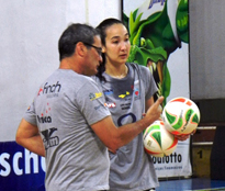 “A diferença existe sim. Na Europa, não se treina muito e a qualidade das atletas não é a mesma das brasileiras… Na Seleção, o trabalho é muito forte, tecnicamente e fisicamente, e o jogo é muito veloz. Mas passei mais tempo na Europa do que na Seleção, por isso sinto dificuldade para acompanhar fisicamente os treinamentos!“